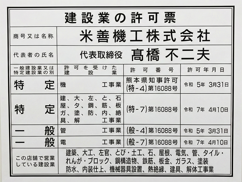 建設業許可を取得し、