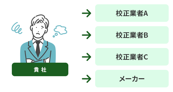 メーカーごとに依頼先が異なり、手配や進捗確認に時間が