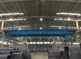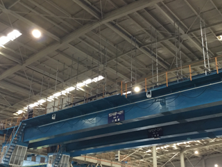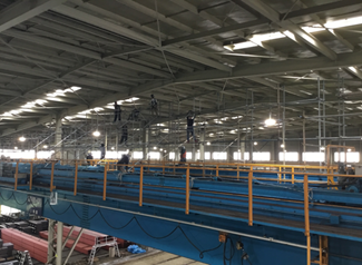 天井ブレス補修及び天井灯LED交換作業の為、作業場として天井クレーンへ足場を仮設した事例です。
