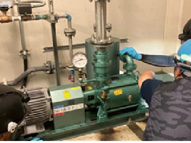 半導体製造業のお客様より、生産ラインで稼働中の水封式真空ポンプのオーバーホールをご依頼いただきました。お客様の工場では、2台の同型機を交互に運転させることで、生産ラインを常時稼働させておられました。真空圧の数値上は特に問題なく、生産への直接的な影響は出ていなかったものの、現場の方から「片方のポンプから若干異音が聞こえる」との報告が上がっていました。上記のような、設備から異音が出ている状態は、故障の前兆である可能性があり、突発的な故障による生産ラインが停止に繋がります。お客様は予防保全として対策を講じたいとのことで、当社にご相談をいただきました。
