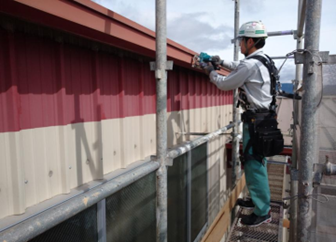 今回のような高所での外壁工事においても、当社は元請けとして、足場工事から部材手配、据付施工までを協力会社のネットワークを駆使して一括管理いたします。建物のメンテナンスに関するお悩みはぜひお気軽にご相談ください。